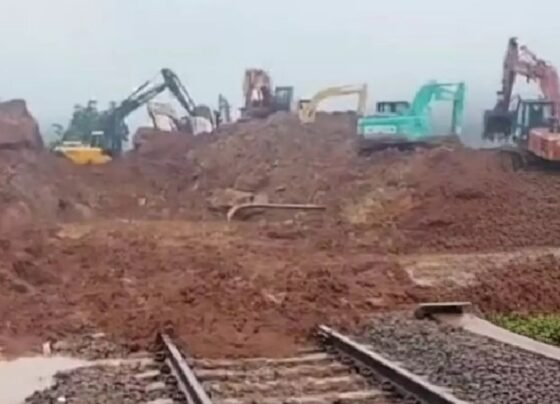 रेल लाइन पर लैंडस्लाइड: दो ट्रेन कैंसिल और 4 शॉर्ट टर्मिनेट, तीन दिन से कर्मचारी हटा रहे मलबा