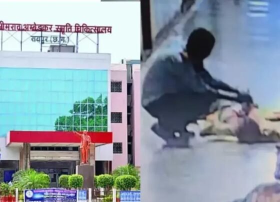 CG के सबसे बड़े सरकारी अस्पताल मेकाहारा में फिर हुई चोरी: महिला मरीज का मोबाइल और पर्स उड़ाया, गार्ड सीसीटीवी में कैद