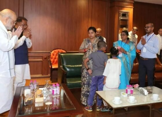सुकमा IED ब्लास्ट में शहीद आकाश राव के परिवार से मिले गृहमंत्री अमित शाह, बोले- उनके बलिदान का देश ऋणी