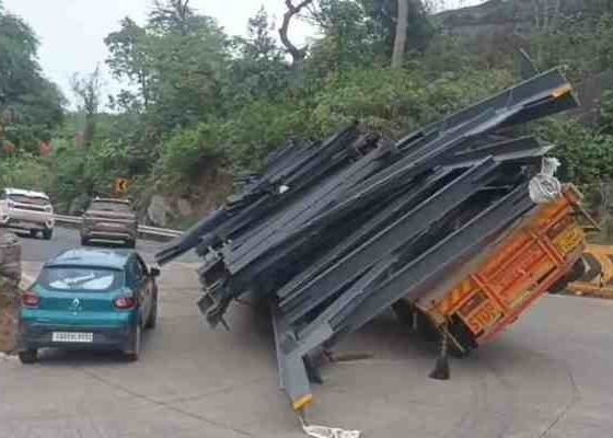 केशकाल घाट पर ट्रेलर पलटा: नेशनल हाइवे पर लगा लंबा जाम, यात्रियों को हो रही परेशानी
