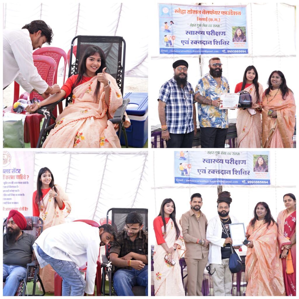 भिलाईः Bhilai News इस्पात नगरी भिलाई-03 क्षेत्र में रविवार को स्नेहा सोशल वेलफेयर फाउंडेशन द्वारा आयोजित निःशुल्क स्वास्थ्य जाँच एवं रक्तदान शिविर का सफलतापूर्वक समापन हुआ। यह शिविर एएम हॉस्पिटल, भिलाई-चारोदा एवं बालाजी ब्लड सेंटर, भिलाई के सहयोग से संपन्न हुआ, जिसमें क्षेत्र के नागरिकों ने उत्साहपूर्वक भाग लिया।