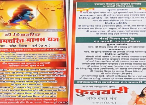 Durg News: ग्राम झीट में दो दिवसीय श्रीरामचरित मानस यज्ञ एवं मंडई मिलन समारोह का भव्य आयोजन, देखें कार्यक्रम की पूरी जानकारी