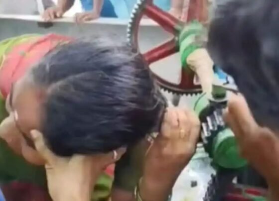 गन्ने का रस पीने गई थी महिला, तभी तेज रफ्तार में चल रही मशीन ने खींच ली महिला की चोटी, कमजोर दिल वाले न देखें Video