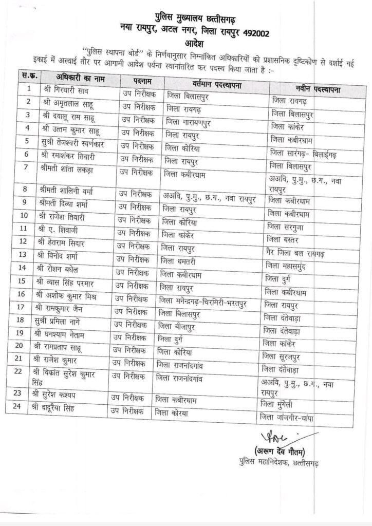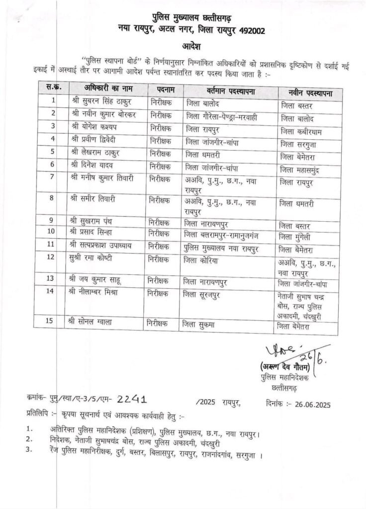 इस आदेश में उप निरीक्षक, सहायक उप निरीक्षक, प्रधान आरक्षक और आरक्षक स्तर के अधिकारी भी शामिल हैं। तबादले पूरी तरह प्रशासनिक आधार पर किए गए हैं और ये अगले आदेश तक प्रभावी रहेंगे।