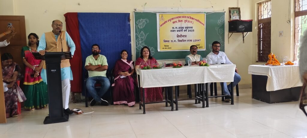 पाटन। शासकीय चंदूलाल चंद्राकार कला एवं विज्ञान महाविद्यालय पाटन में छत्तीसगढ़ राज्य स्थापना दिवस “रजत जयंती” के अवसर पर ‘विकसित छत्तीसगढ़ 2047’ विषय पर सेमिनार का आयोजन किया गया। कार्यक्रम में भाजपा प्रदेश मंत्री जितेंद्र वर्मा, भाजपा जिला उपाध्यक्ष दिलीप साहू, नगर पंचायत एवं जनभागीदारी अध्यक्ष योगेश निक्की भाले, मंडल अध्यक्ष रानी बंछोर, प्राचार्य डॉ. नंदा गुरुवारा और पूर्व छात्रसंघ अध्यक्ष प्रवीण मढ़रिया मंचासीन रहे और विद्यार्थियों को संबोधित किया।